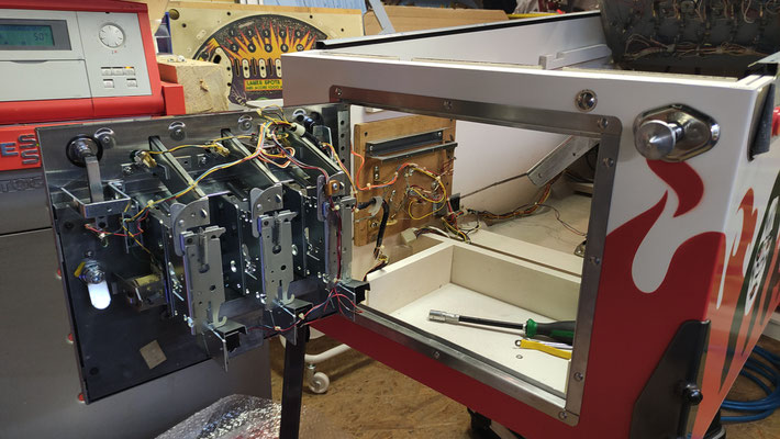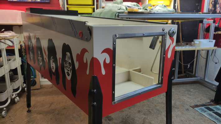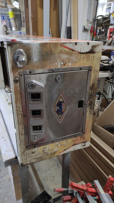 Das Projekt war als Vollrestauration geplant. Dabei zeigte sich das Gehäuse in desolatem Zustand. Es musste ein neues her. Die Fertigung war unkompliziert, einzig die Lackierung bereitete uns Kopfschmerzen. Wir wollten so nah wie möglich an das Original heran, Lackieren mit Schablonen.