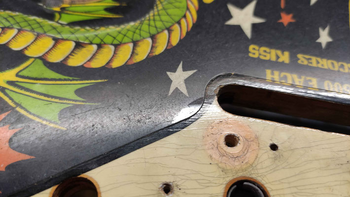 Hier galt es eine Entscheidung zu treffen: Original mit kleinen Abstrichen und einem Protektor zu Schutz, oder ein neues oder restauriertes mit Klarlack? Ich habe mich für die Erhaltung entschieden. Das Ergebnis spricht aus meiner Sicht für sich.